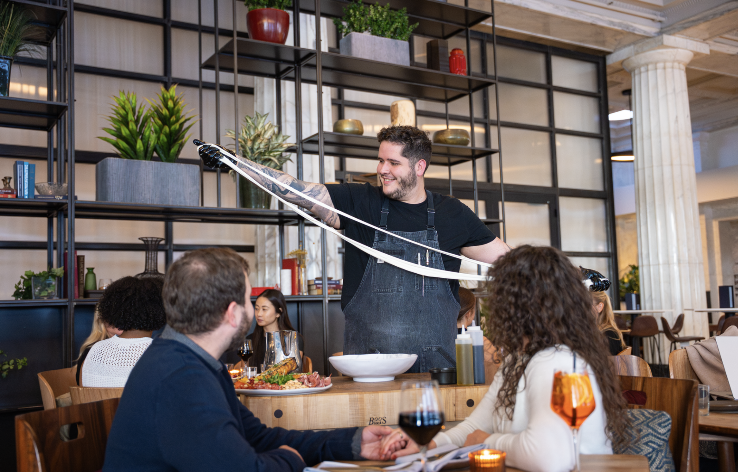 Discover the magic of Mozzarella a Mano every Thursday night, now featuring our signature smoked mozzarella. Our chefs hand-pull fresh mozzarella tableside, transforming it into a silky, smoky delight. This interactive experience lets you savor mozzarella at its freshest, paired with seasonal accompaniments and housemade focaccia. Celebrate authentic Italian flavors brought to life, one exquisite stretch at a time.